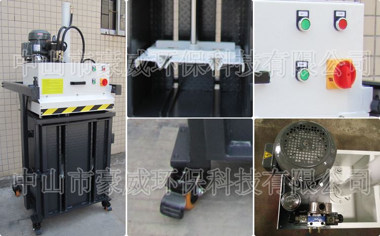 采用上部投料結(jié)構(gòu),操作方便、安全可靠;體積小、帶固定機(jī)構(gòu)及腳輪,移動方便;設(shè)計緊湊,液壓動力系統(tǒng)、速度快、效率高、噪音低;節(jié)省廢物廢紙存儲空間及保持環(huán)境干凈整潔。